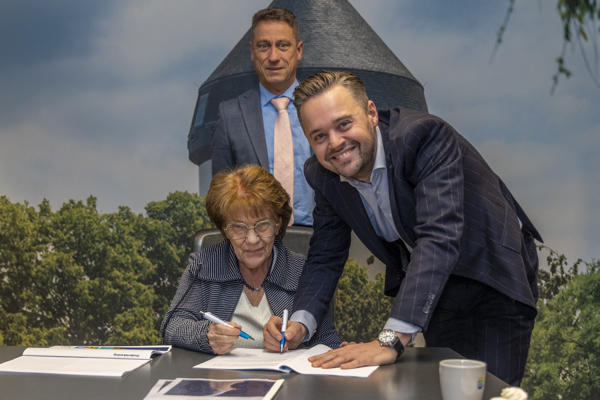 Op de bijgaande foto ziet u hoe Riet Kranenburg (voorzitter HPF) en Maarten Knigge (directeur Wonen en Vastgoed bij SOR) de afspraken ondertekenen, onder toeziend oog van wethouder Wonen Aart Jan Spoon.