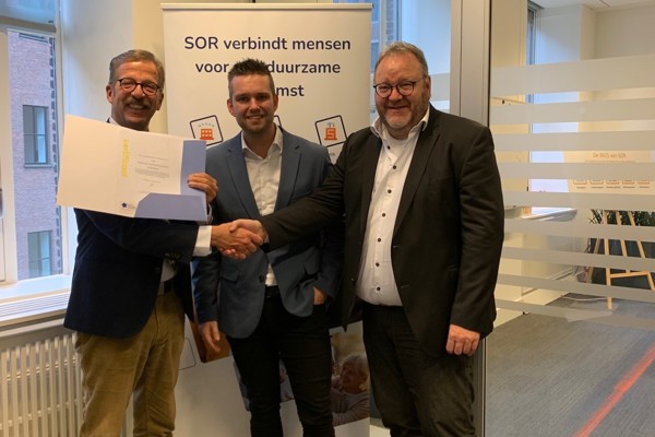 SOR mag zich sinds deze week een dementie vriendelijke organisatie noemen. Bob Janse, voorzitter van Stichting Alzheimer,afdeling Rotterdam, heeft het certificaat overhandigd aan bestuurder Dick Mol. Samen met programmamanager Ferdie Baaij nam hij het felbegeerde certificaat in ontvangst.