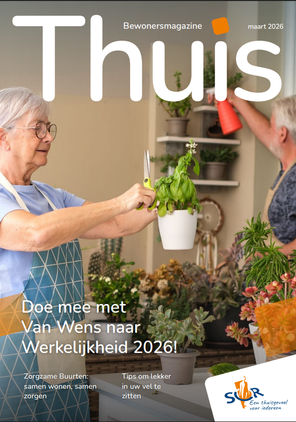 THUIS magazine editie maart 2026! In deze editie gebeurt van alles! Van Van Wens naar Werkelijkheid 2026, vrijwilligers in Hoogerbrugge in het zonnetje zetten, tot smullen bij de Binnenhoftoren. We praten bij over huurverhoging 2026, prestatieafspraken én onze Zorgzame Buurten. Maar ook het 30-jarig jubileum van onze collega, Monique Jansson. Verder vind u mooie bijdragen van bewoners en de column van het Huurdersplatform!