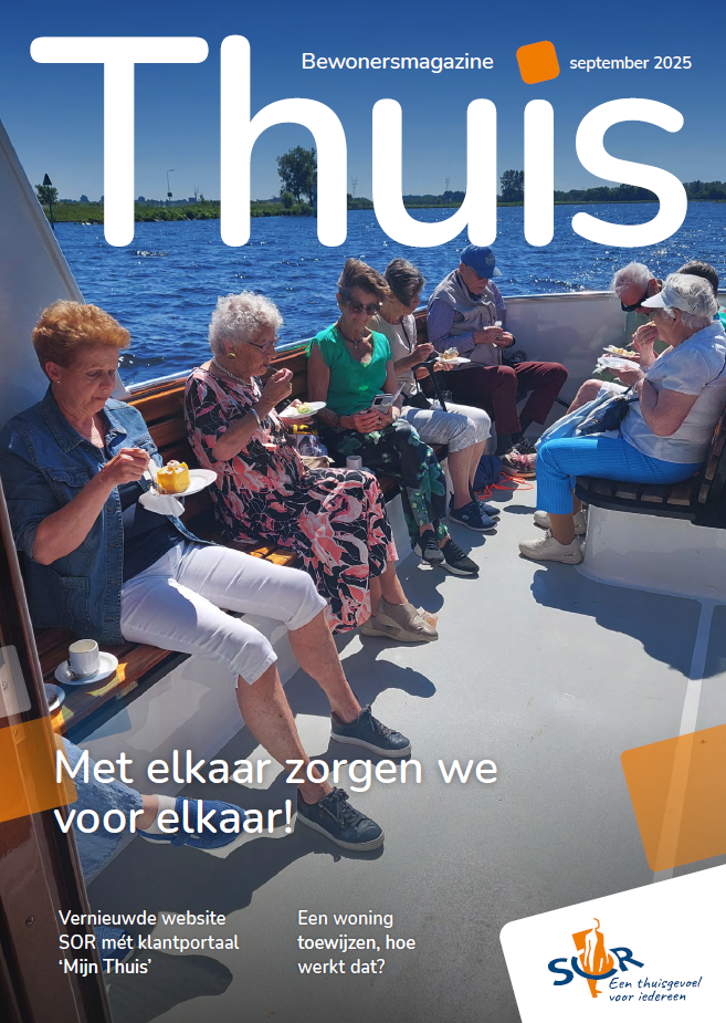 Bewoners ontvingen of ontvangen binnenkort het Thuismagazine van september. In deze uitgave aandacht voor verschillende bewonersactiviteiten, onze huishoudboekjes, de community manager, uitleg over hoe SOR woningen toewijst en nog veel meer.