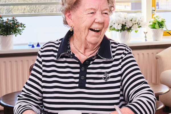 Wil en haar buurvrouwen zijn ondanks hun leeftijd nog heel actief. “Zolang het kan, blijf ik zoveel mogelijk leuke dingen doen. We vragen regelmatig aan bewoners die niet zo vaak in de recreatieruimte zijn, of ze ook willen komen.” Vaste medewerkers van Aafje bezoeken de bewoners die zorg aan huis nodig hebben. Ze kijken of het goed gaat en helpen met medicatie of oefeningen. “Het is prettig dat ze thuis langs kunnen komen. En dat het vaste mensen zijn. Dat is vertrouwd”, vertelt één van de buurvrouwen van Wil.